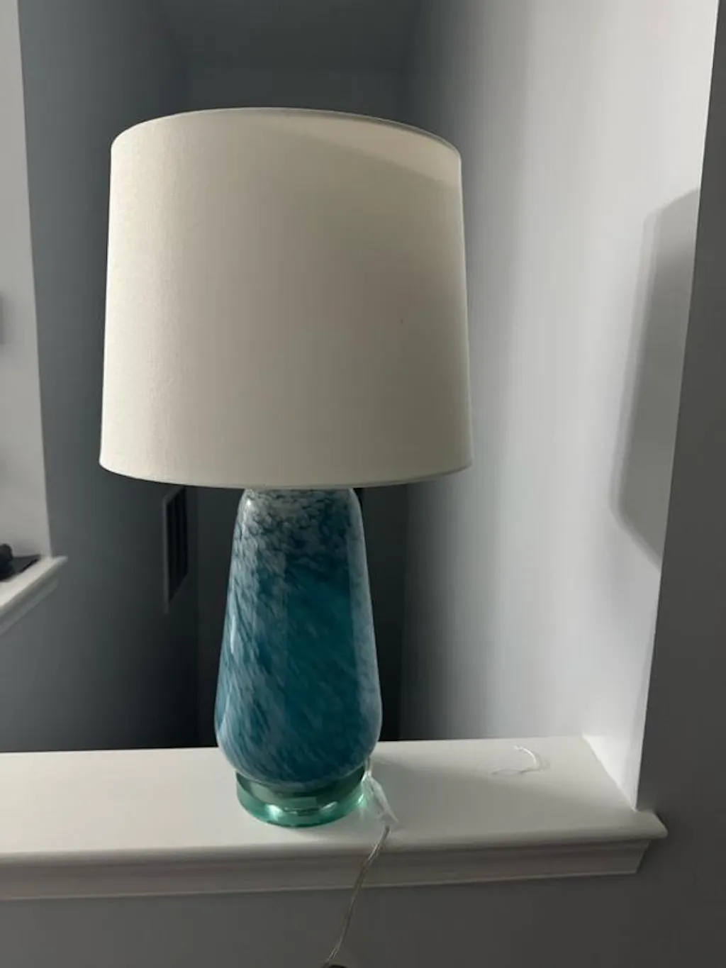 I was sent a lamp which is what I chose and I’m supposed to review a comforter set (which I never chose or received) so I’m just going to talk about how I like the lamp. It’s the perfect size for the space and I love the color
